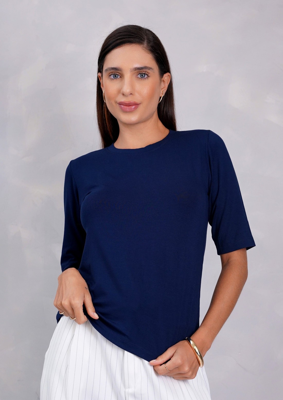 Kit com 3 Blusas Bel, nas cores: marinho, off white e preto. Perfeitas para compor looks versáteis e atemporais! Uma seleção curada para quem busca conforto, qualidade e praticidade no dia a dia.